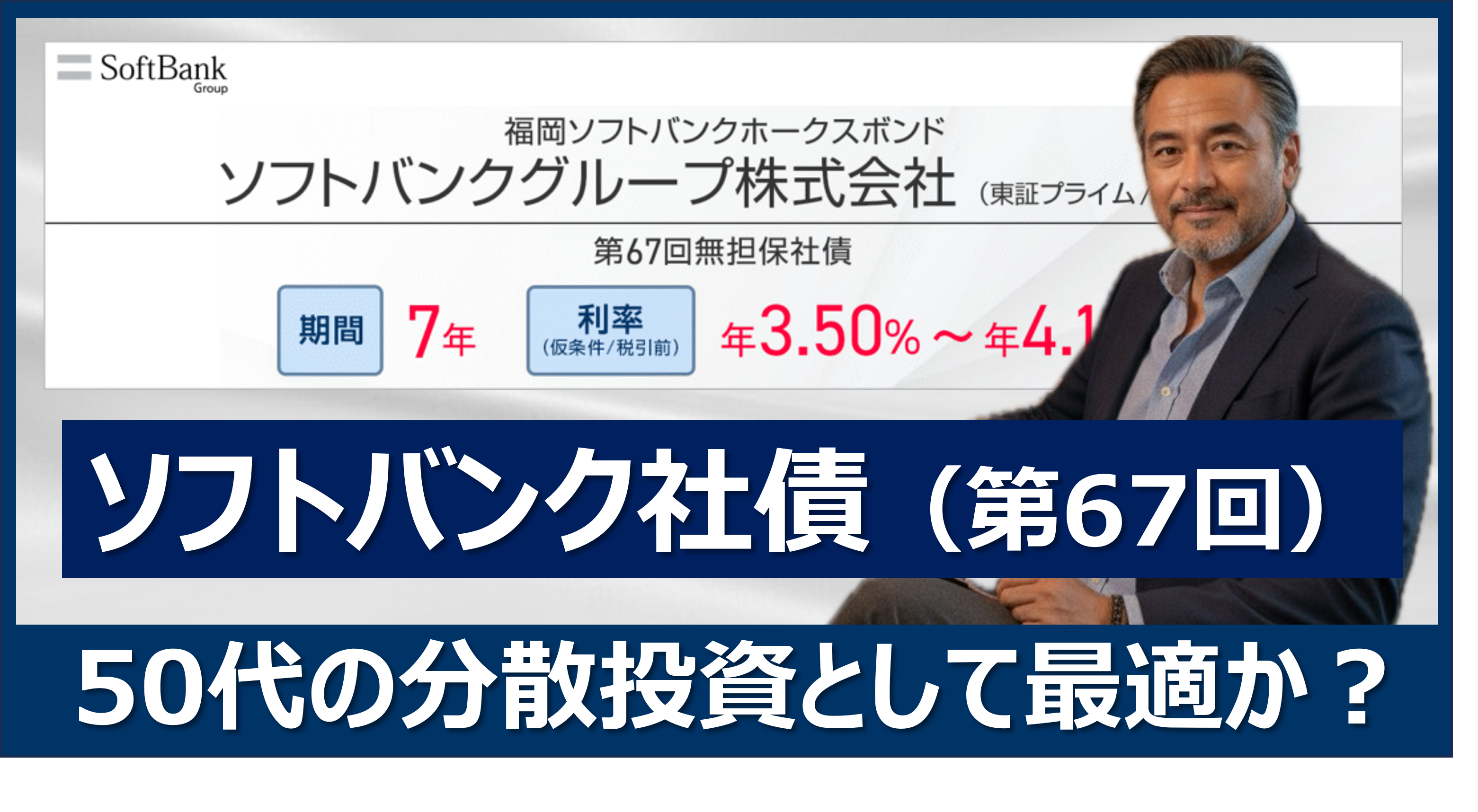 ソフトバンク社債(第67回)は50代の分散投資として最適か?|利率3.50〜4.10%、第65回との比較、安全性、口コミなどを徹底調査