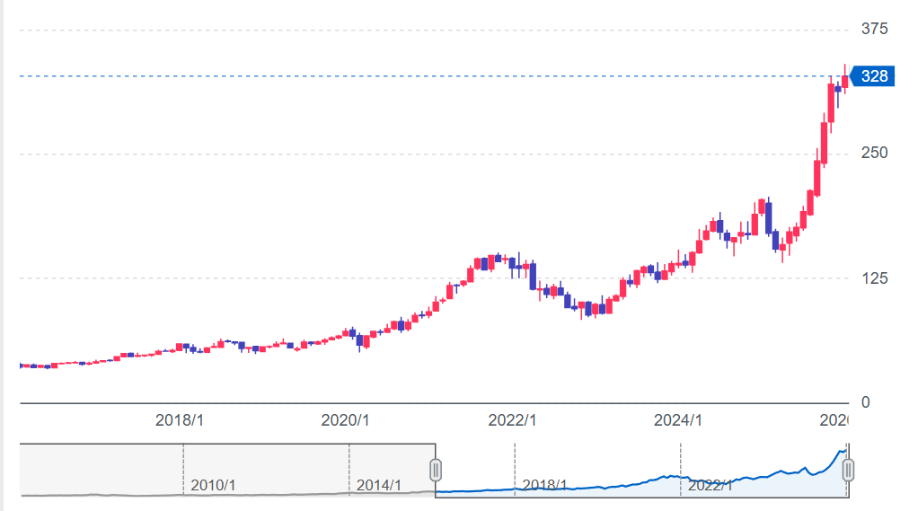 現在の株価は過去10年で最高値圏にあり、短期的な調整リスクは無視できません。決算ミス、市場全体の調整、地政学的リスクなど、何らかの材料で20〜30%下落する可能性は常にあります。