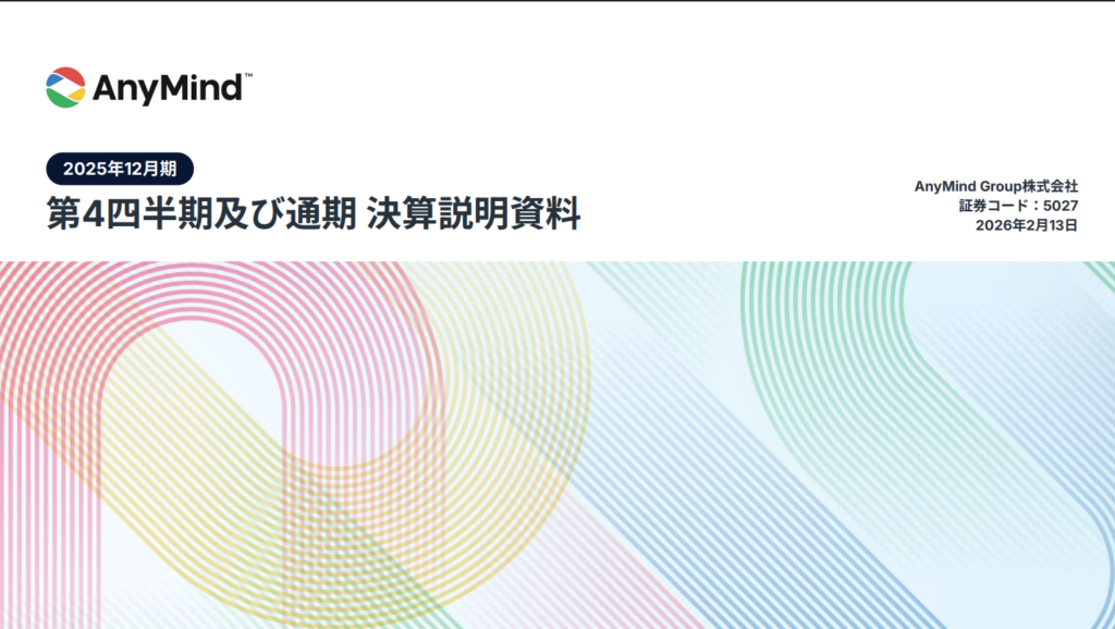 しかし2月13日(金)発表の通期決算で、AnyMindは売上・利益の主要指標で会社計画を超過達成。法人ブランド支援事業を中心に成長が続いており、2026年予想も大幅増収増益を見込むなど、成長ストーリーは継続していることが確認できました。